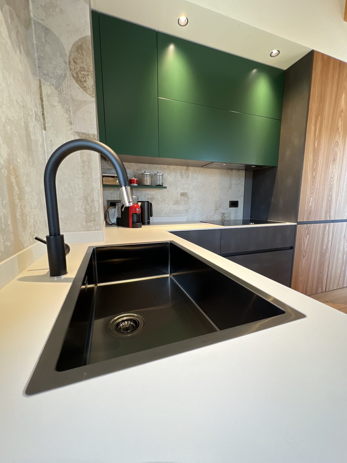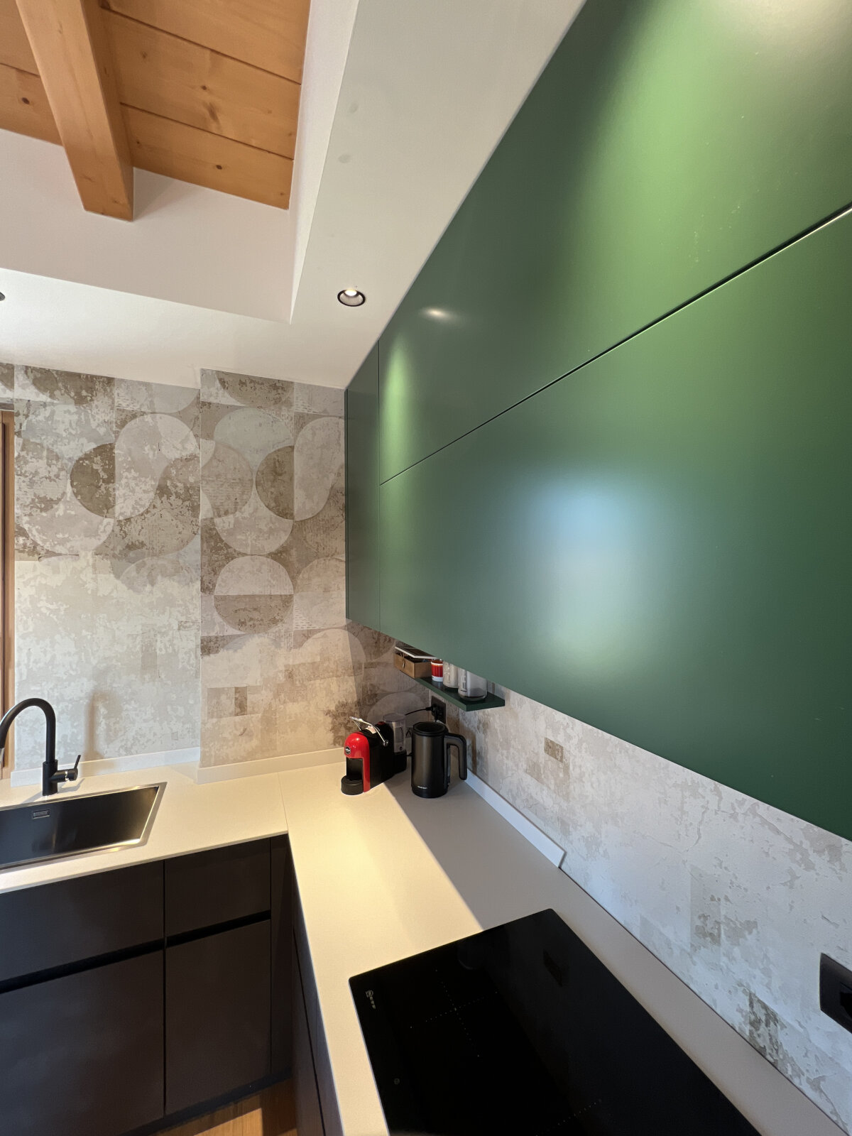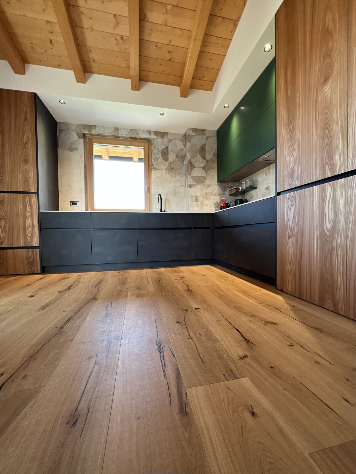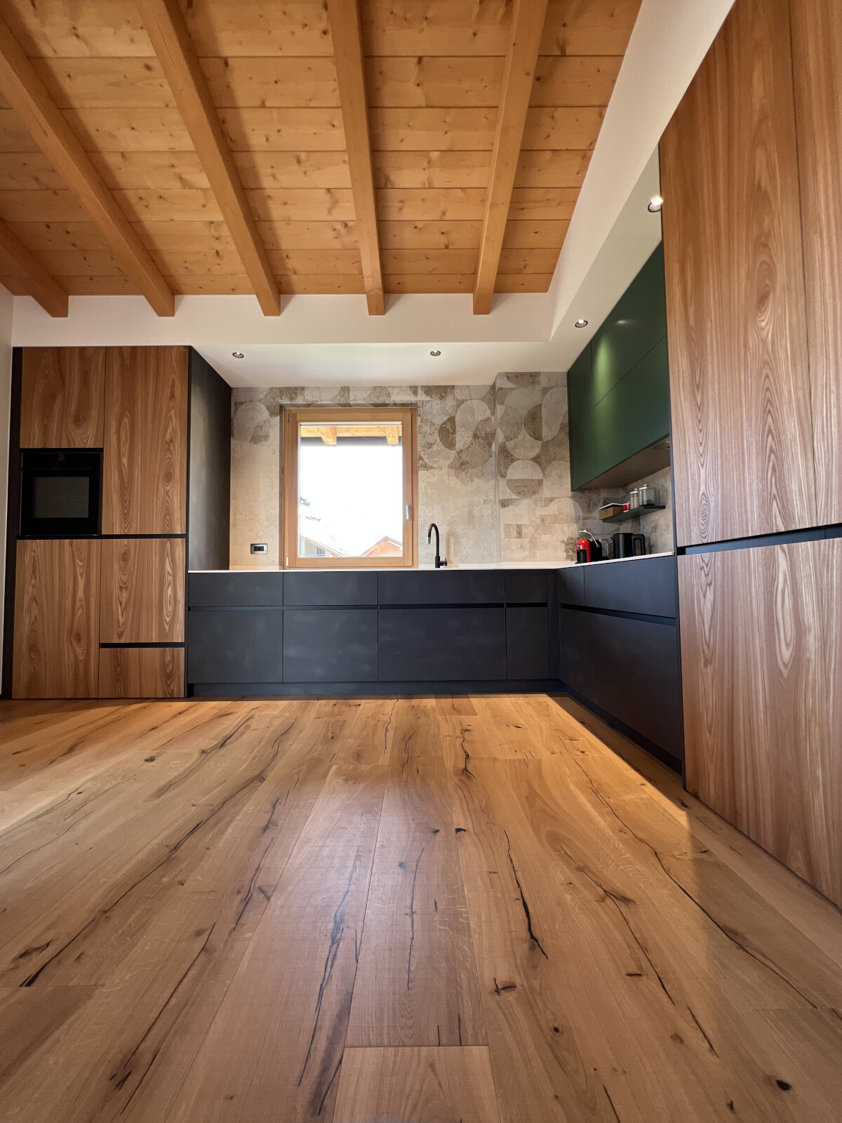 Arredo cucina, serramenti e porte interne realizzati su misura con un linguaggio uniforme e contemporaneo. La cucina integra piani puliti, colonne funzionali e finiture calde che dialogano con le finestre in legno/alluminio e le porte interne coordinate, creando un’estetica armonica in tutta l’abitazione. Un intervento completo che unisce design, praticità e qualità artigianale.