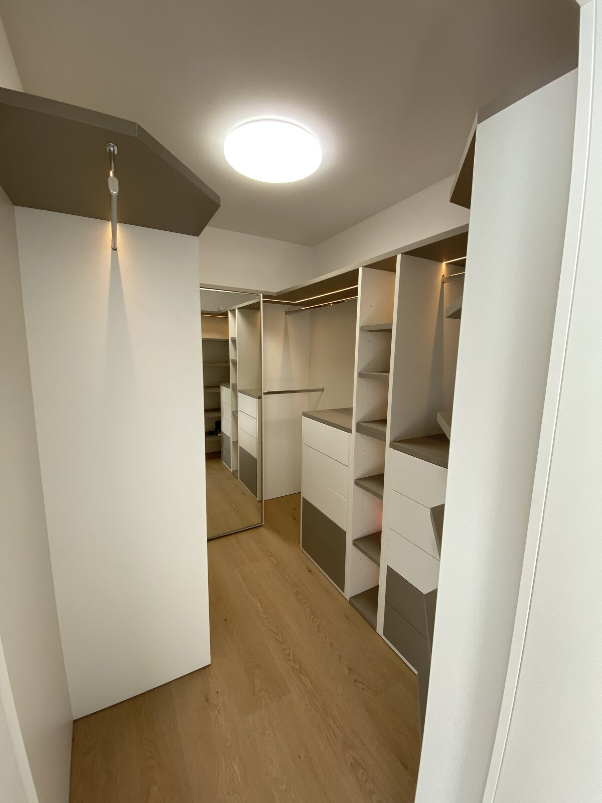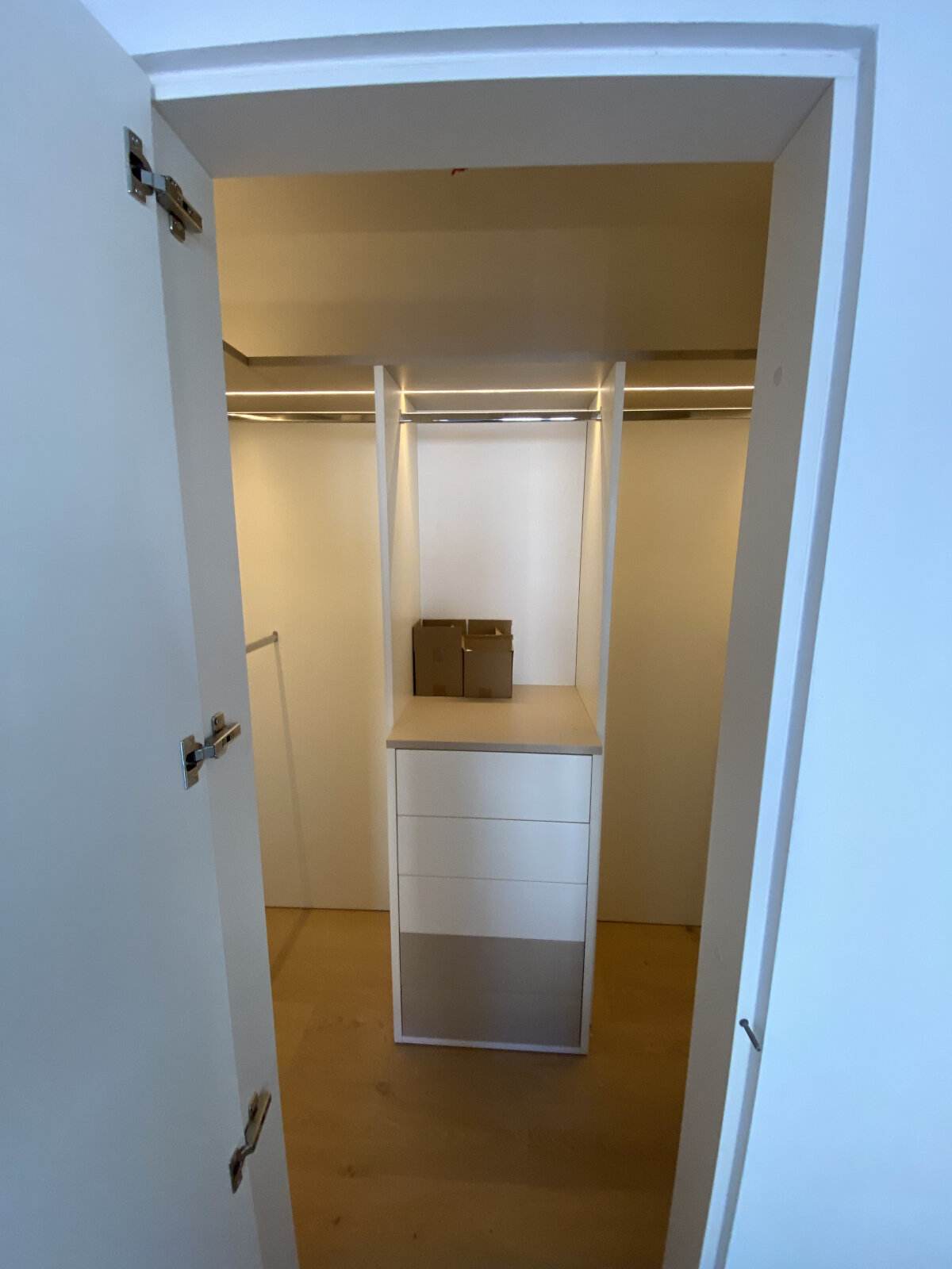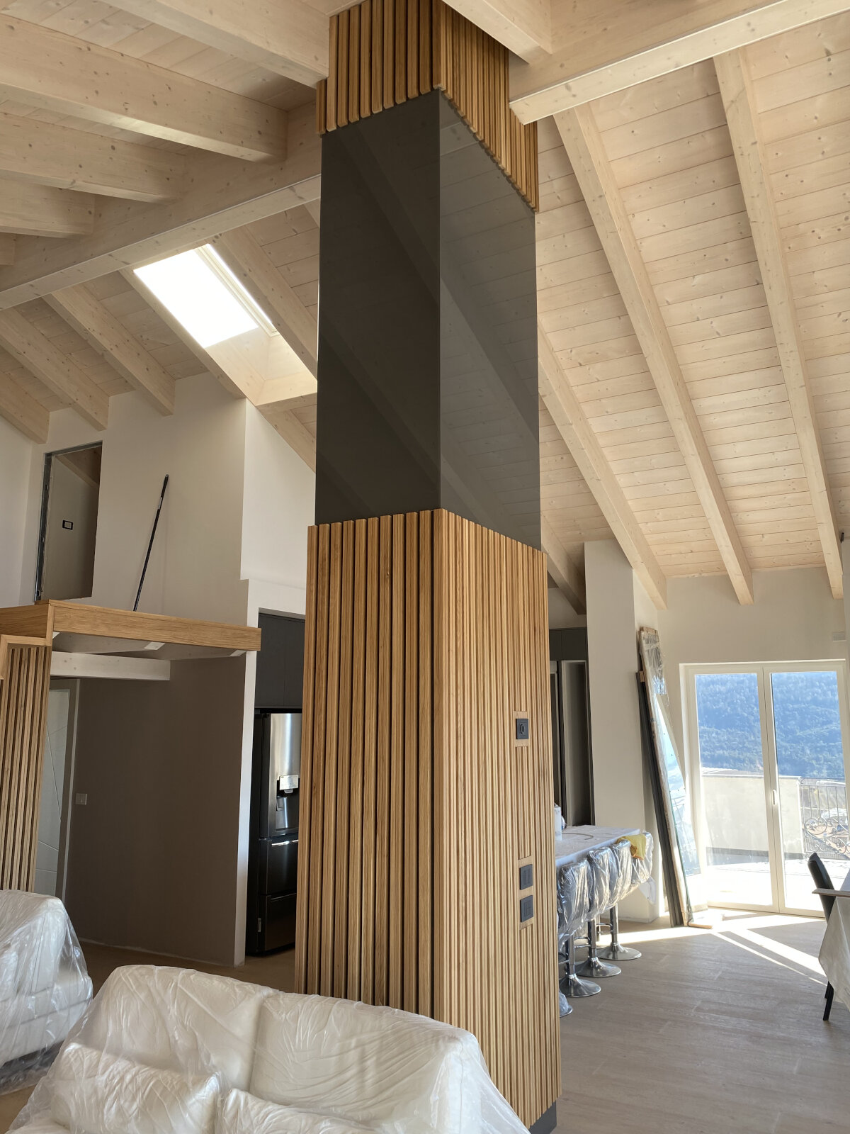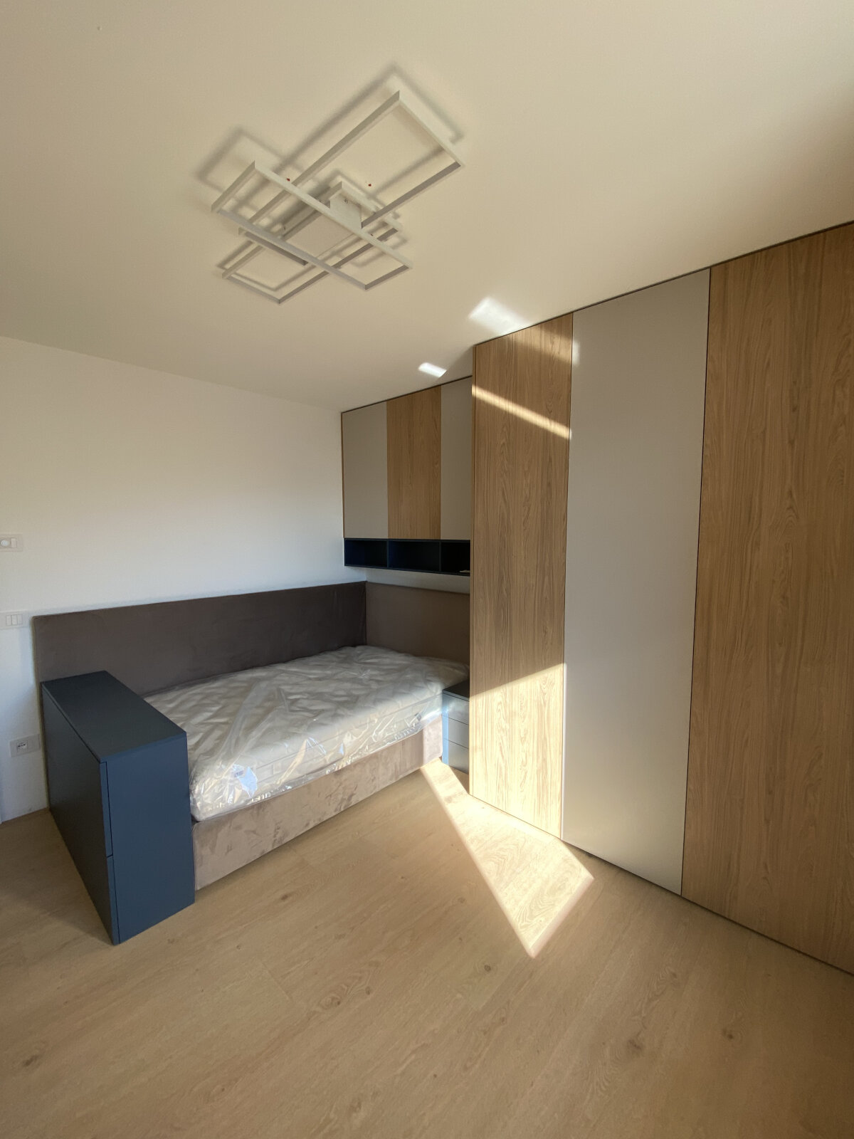 Arredo interno e scala su misura in legno, progettati per dare continuità materica agli ambienti dell’abitazione. La scala, dalle linee pulite e dalla struttura leggera, si integra con i mobili contenitivi e le finiture calde, creando uno spazio ordinato, elegante e ben organizzato.